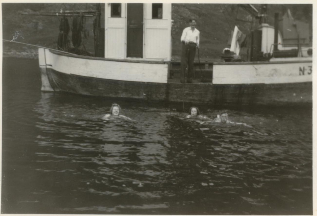 Endel bilder av båter og folk på fiske og tur.
